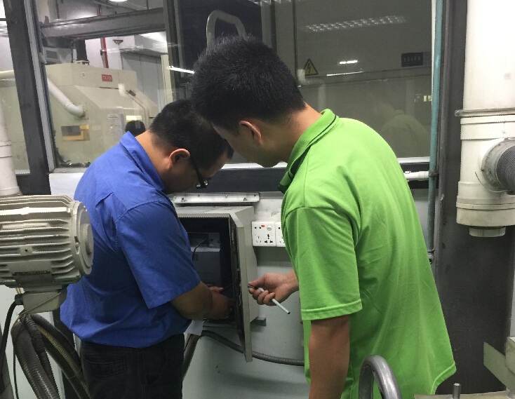 核查人员现场检查协荣塑胶(深圳)有限公司电机改造情况