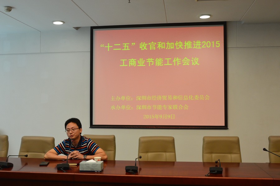 2015年9月9日下午,深圳市“十二五”收官和加快推进2015工商业节能工作会议在市民中心C区3136会议室举行。本次会议由市经贸信息委主办,市节能专家联合会承办。来自全市各区经促局、新区经服局节能科室负责人,各区节能工作第三方服务单位主要负责人,以及市节能专家联合会、市节能检测评价中心、市绿创人居环境促进中心、市电气节能研究会、通标公司深圳分公司、拓远能源科技公司、市高分子行业协会等市级节能第三方核查评估机构主要负责人参加了本次会议。