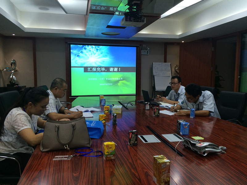 上图为督导小组(左一、左二)对深圳维他(光明)食品饮料有限公司进行督导工作