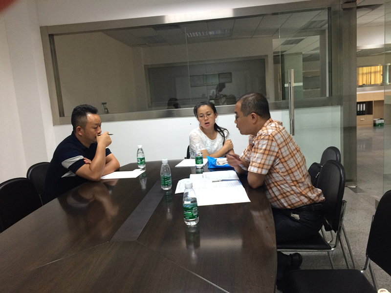 上图为督导小组(右一、右二)对新兴纺织(深圳)有限公司进行督导工作