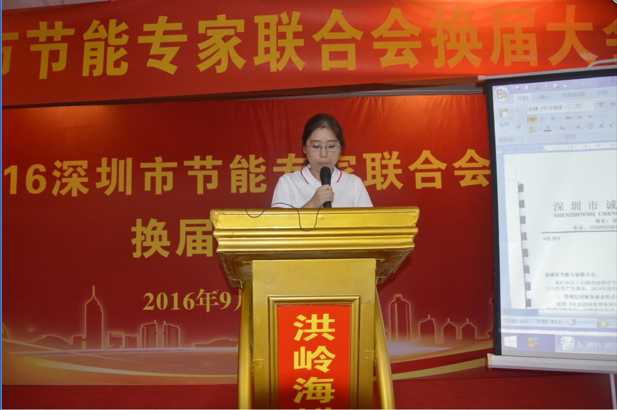 深圳市节能专家联合会秘书长孙长富作了《第二届理事会工作报告》、《2011-2015年财务状况报告》。