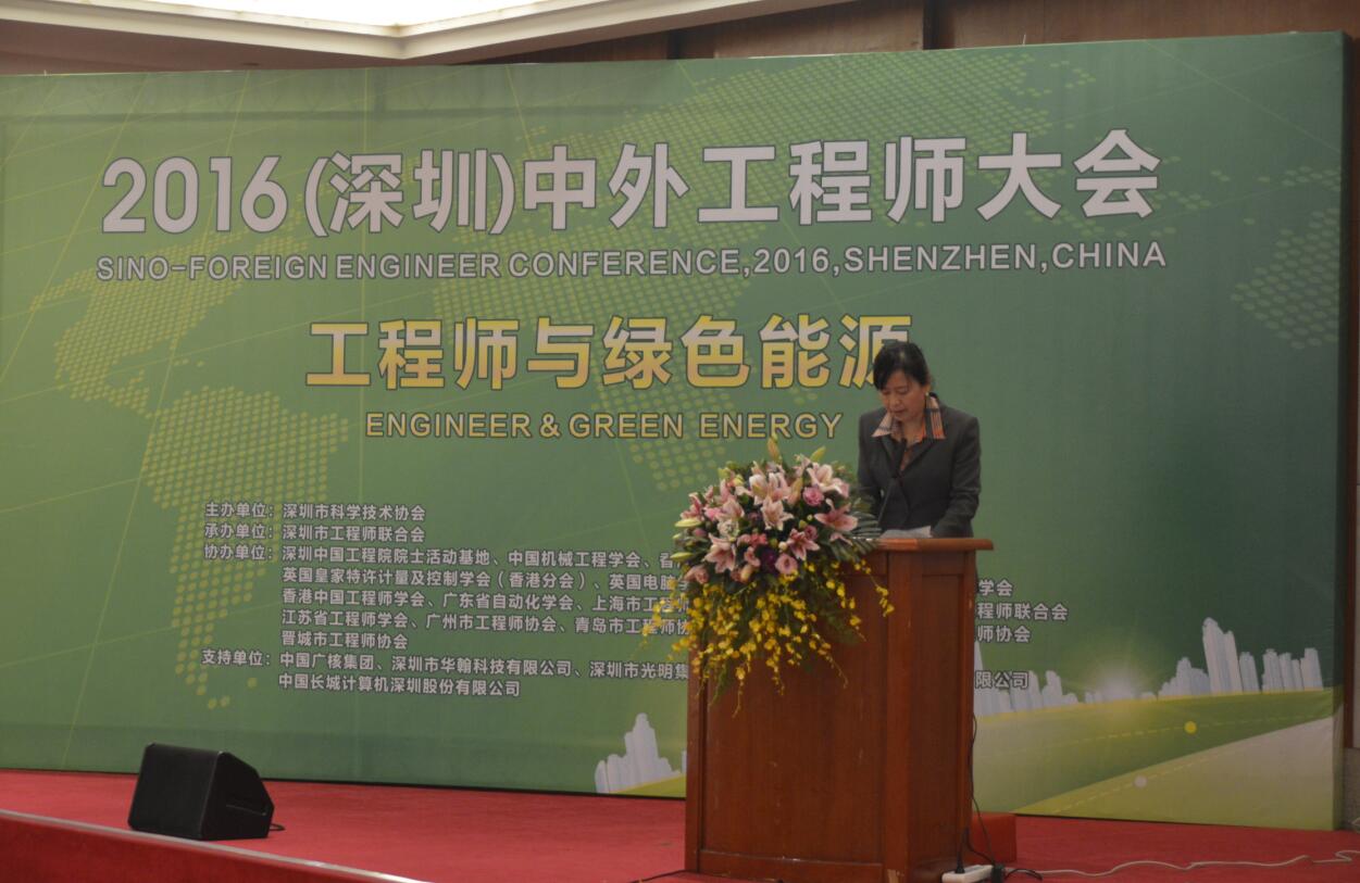 2016年12月10日下午,由深圳市科学技术协会主办、深圳市工程师联合会承办的 “2016(深圳)中外工程师大会”在深圳市民中心B区多功能厅成功举办。此次大会以“工程师与绿色能源”为主题。中国工程院的郑健超、李建刚院士,国家能源局国际合作司副司长安丰全博士,清华大学张希良教授等业界知名专家出席大会并作主题演讲。中国科协、深圳市科协相关领导和在深的能源专家及工程师等400多人出席了会议,深圳市科学技术协会党组书记张莉出席大会并致辞。