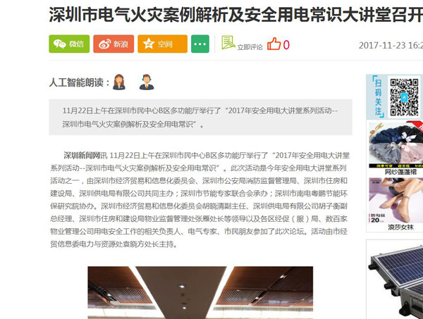 “2017年深圳市安全用电大讲堂系列活动——电气火灾案例及安全用电常识解析总结报告”领导讲话主题明确、专家案例分析透彻、现场演示生动,有关用电企业通过交流学习,促进了用电安全教育的普及。此次大讲堂活动在积极、热烈、友好的气氛下圆满结束。